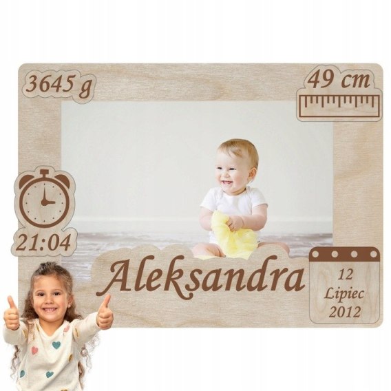 Metryczka Ramka na Zdjęcie Personalizowana Drewniana Eko Pamiątka Narodzin